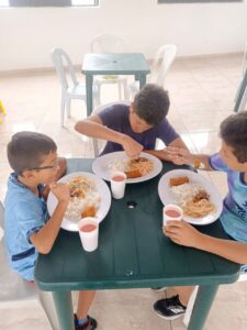 Alrededor de la mesa, se comparten sonrisas, conversaciones y momentos que llenan el alma. Cada plato preparado con esmero refleja el compromiso de brindarles una alimentación balanceada, pensada para su crecimiento y desarrollo integral.